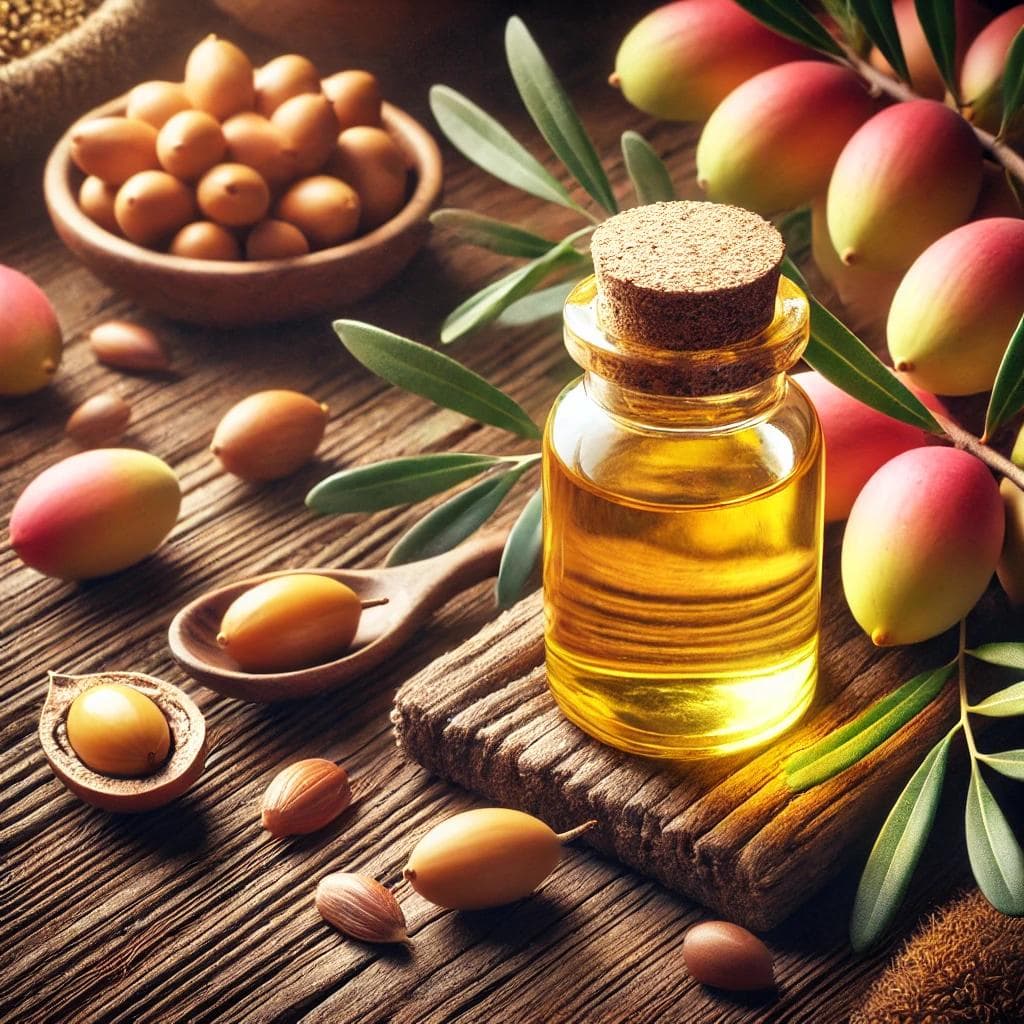아르간 오일은 모로코 지역의 아르간 나무(Argania spinosa) 열매 씨앗에서 추출된 천연 오일입니다. 아르간 오일은 불포화 지방산, 비타민 E, 스쿠알렌 등 피부와 모발 건강에 필수적인 성분들이 다량 함유되어 있고 전통적으로 수작업으로 채취되어 그 귀중함이 더해집니다.